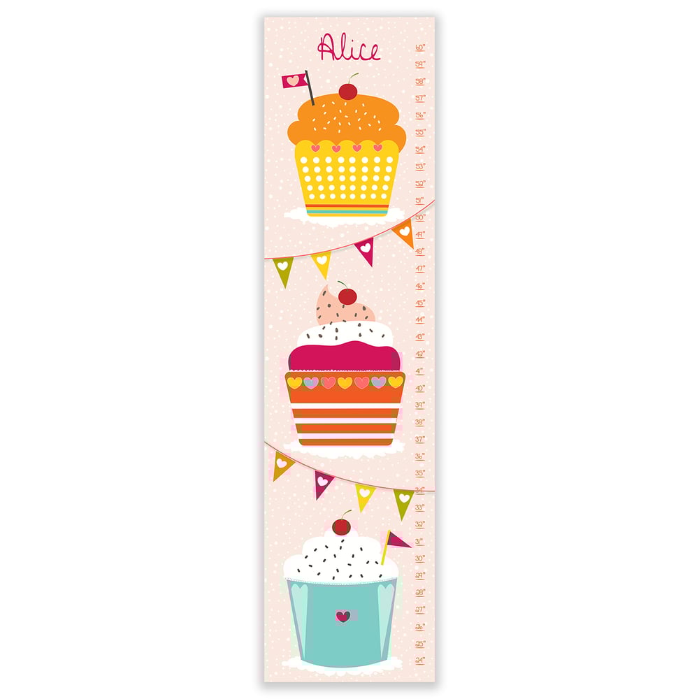 Yummy Cupcakes - Personalized Girl's Pink Canvas Growth Chart